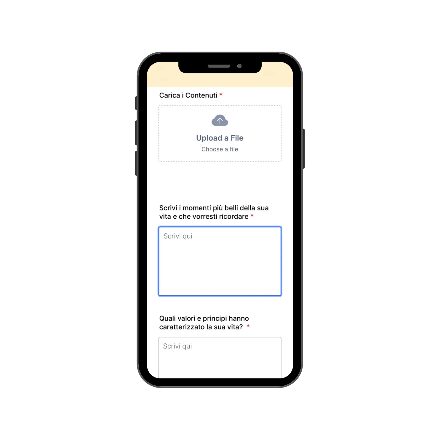Dopo pochi minuti dal tuo acquisto, ricevi un modulo tramite email per caricare biografia, foto, video e dediche che vuoi inserire nella pagina dedicata al tuo caro.